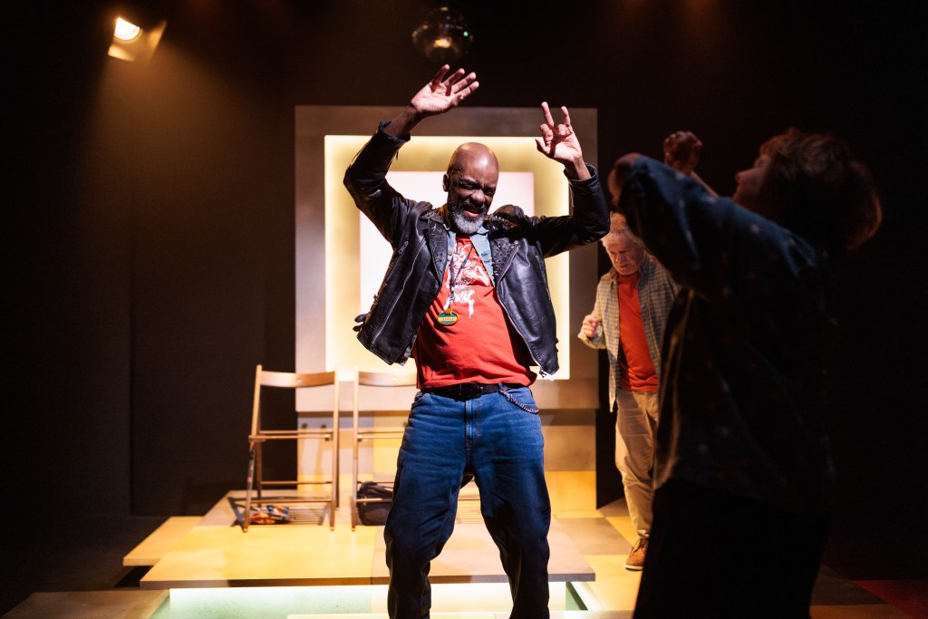 This is a character piece, and those characters are not introduced in a neat and tidy way – again, the audience has to work at this, piecing bits and pieces of conversation and half-finished thoughts together as the play goes on. Lynn, played by Tessa Peake-Jones, is a 60-year-old woman who has a quiet life watching The One Show and cleaning the Walthamstow Travelodge until a random interaction with a strange changes everything in ways she’d never have imagined before. Jack, played by James Holmes, is a grieving widower trying to work out whether it’s time to start dating – or even living – again after the death of his husband. And Alec, played by Kevin N. Golding, is a man who can’t quite believe he’s reached the big 6-0, and does everything he can to pretend it’s not happening, until he can’t pretend anymore.